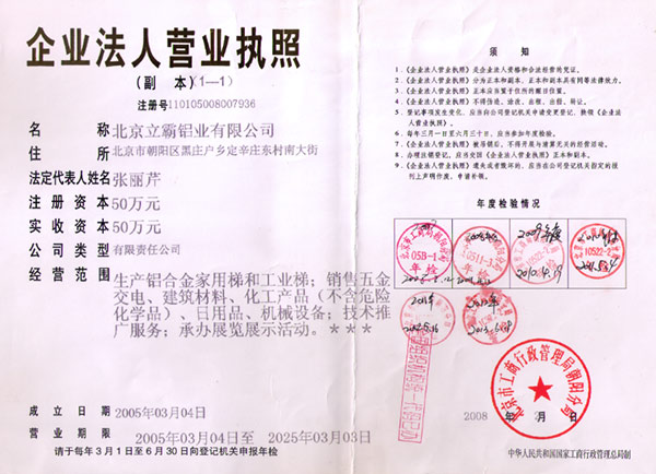 北京立霸鋁業(yè)有限公司是集研發(fā)、生產(chǎn)和銷售各種鋁合金工業(yè)型材、管材、板材、鋁合金梯子材料及梯子配件、鋁合金梯子、絕絕梯子、鋁合金液壓升降平臺等系列產(chǎn)品的專業(yè)廠家。